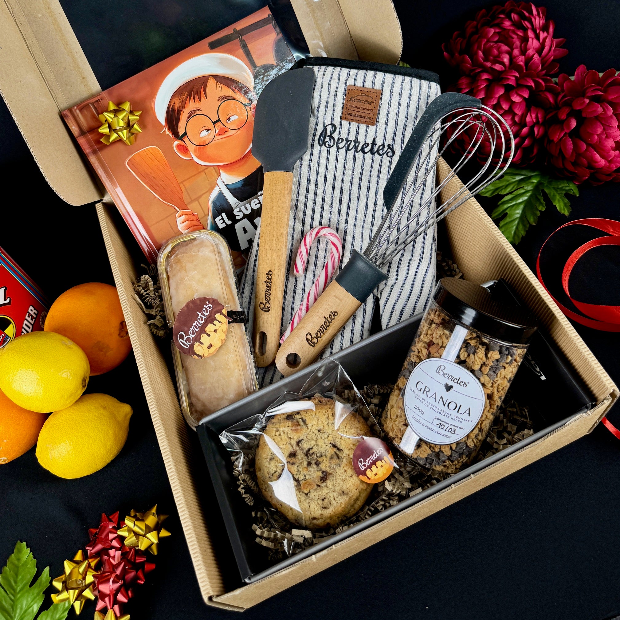 Con esta preciosa cesta vas a conseguir dos cosas: que los peques de la casa aprendan muchísimo sobre inclusión gracias nuestro cuento "El sueño de Arín", y que desarrollen una nueva afición preciosa: la pastelería., gracias a las 5 recetas incluidas en el cuento y a los utensilios de gran calidad que hemos seleccionado para iniciarse. Y por si tenéis dudas del resultado de las recetas hemos incluido un pequeño ejemplo de 3 de ellas. Esta cesta incluye: